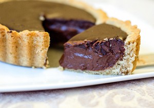 I came up with this simple recipe in a very spontaneous and random way and it turned out to be awesome! It all started when I was making sweet cookies with my little girl Ocean. As we were making the cookies there was one last piece of dough that wouldn’t fit the tray. Not wanting to chuck it I started thinking what I could make from it. My first step was to put it in a pie tray. A week before my husband had made a cake and he noted how much it tasted like the Alpro chocolate pudding so I thought maybe I could bake with that. I knew that I didnt have enough to fill the pie so I decided to add some dark chocolate and voila! A gorgeous vegan chocolate pie, extra chocolaty!