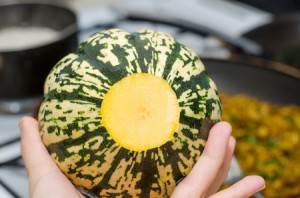 This is my very own recipe, designed to bring pumpkins out of Halloween retirement and totally wow your dinner party guests.