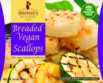 Sophie’s Kitchen produces a line of delicious and award winning vegan seafood substitutes with vegan versions of all your seafood favorites including: shrimp, prawns, squid rings, calamari, breaded shrimp, and breaded fish fillets.